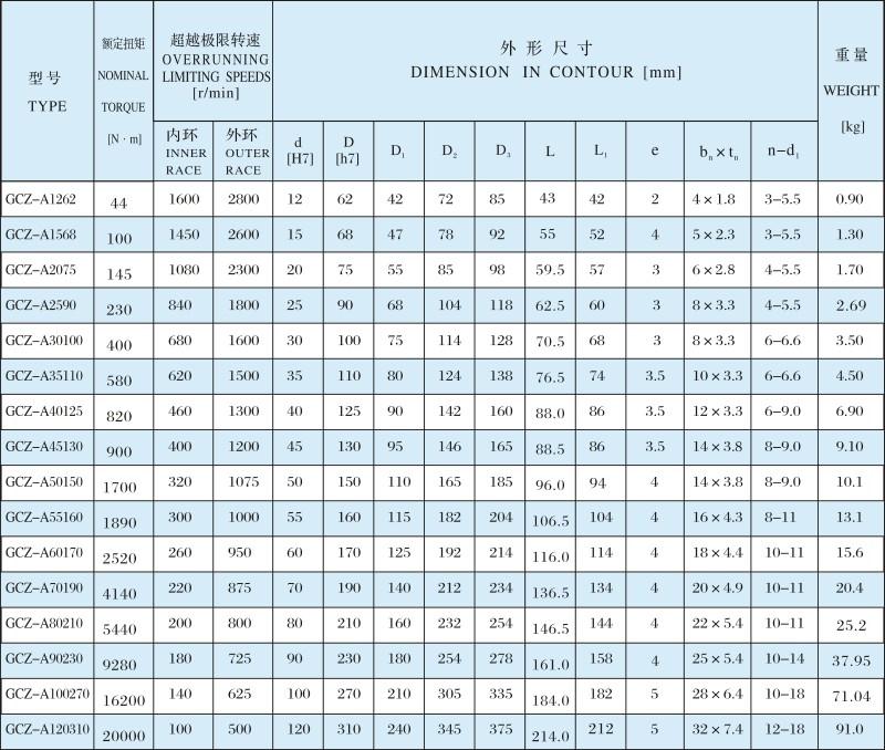 常州GCZ-A滾柱式單向離合器
